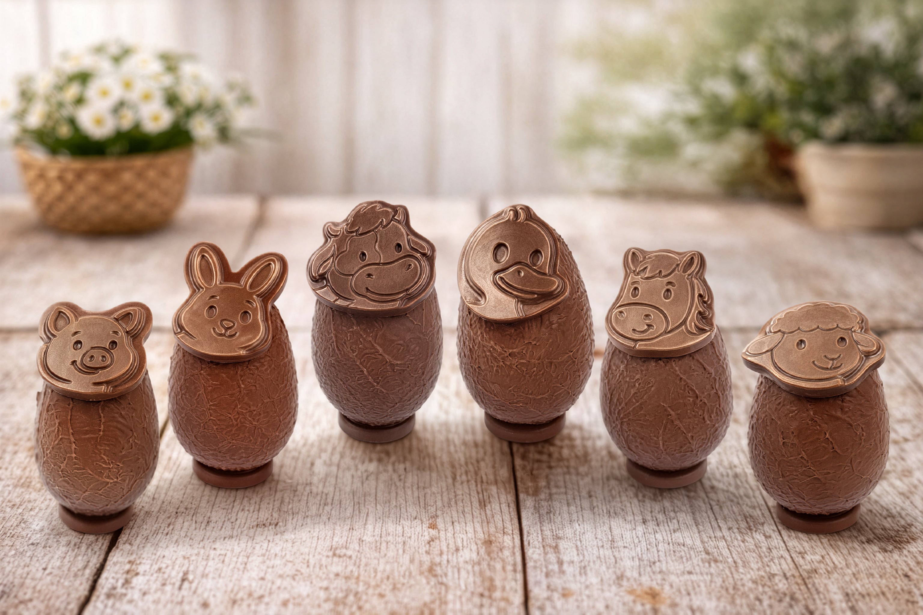 Bring a little fun to Easter with our milk chocolate Farmyard Animal Eggs. Each egg is crafted from smooth, rich milk chocolate and comes as a charming animal – choose from Sheep, Cow, Horse, Pig, Bunny, or Duck.