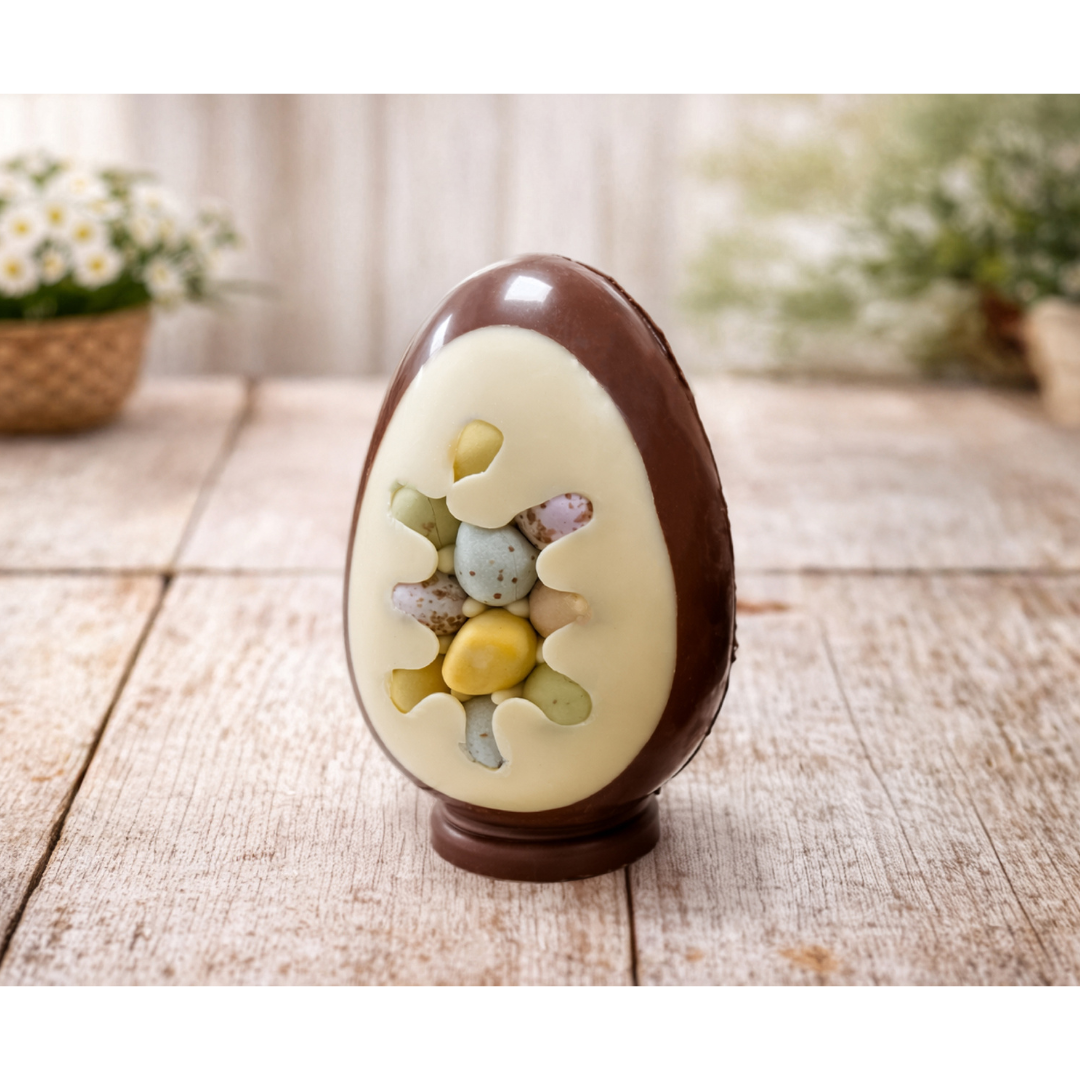 Our Mini Egg Inclusive Easter Egg combines creamy Milk and White Chocolate with a hidden surprise of mini eggs inside. Double the chocolate, double the fun - perfect for sharing, gifting, or adding an extra special touch to your Easter celebrations!