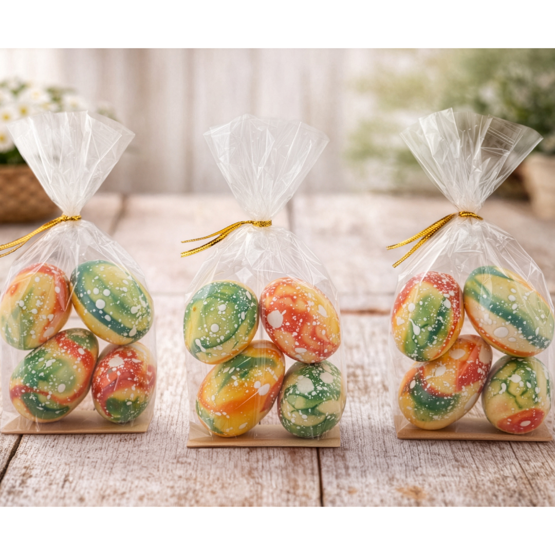 A bag of four White Chocolate Mini Speckled Easter Eggs, beautifully finished and full of flavour. Handcrafted with care by adults with autism and learning disabilities, supported by our expert chocolatiers.